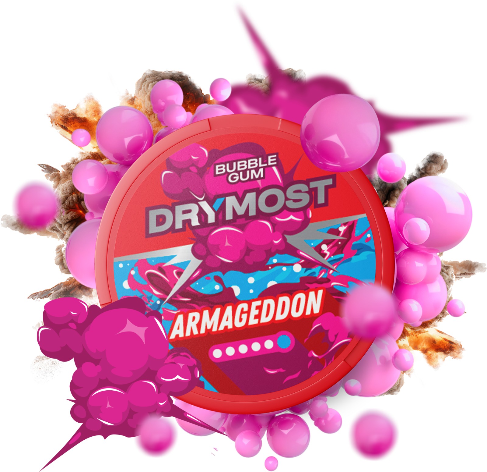 DRYMOST ARMAGEDON BUBBLEGUM – 50MG to eksplodujące woreczki nikotynowe o potężnym smaku słodkiej gumy balonowej, które tworzą prawdziwie apokaliptyczne doznania smakowe.