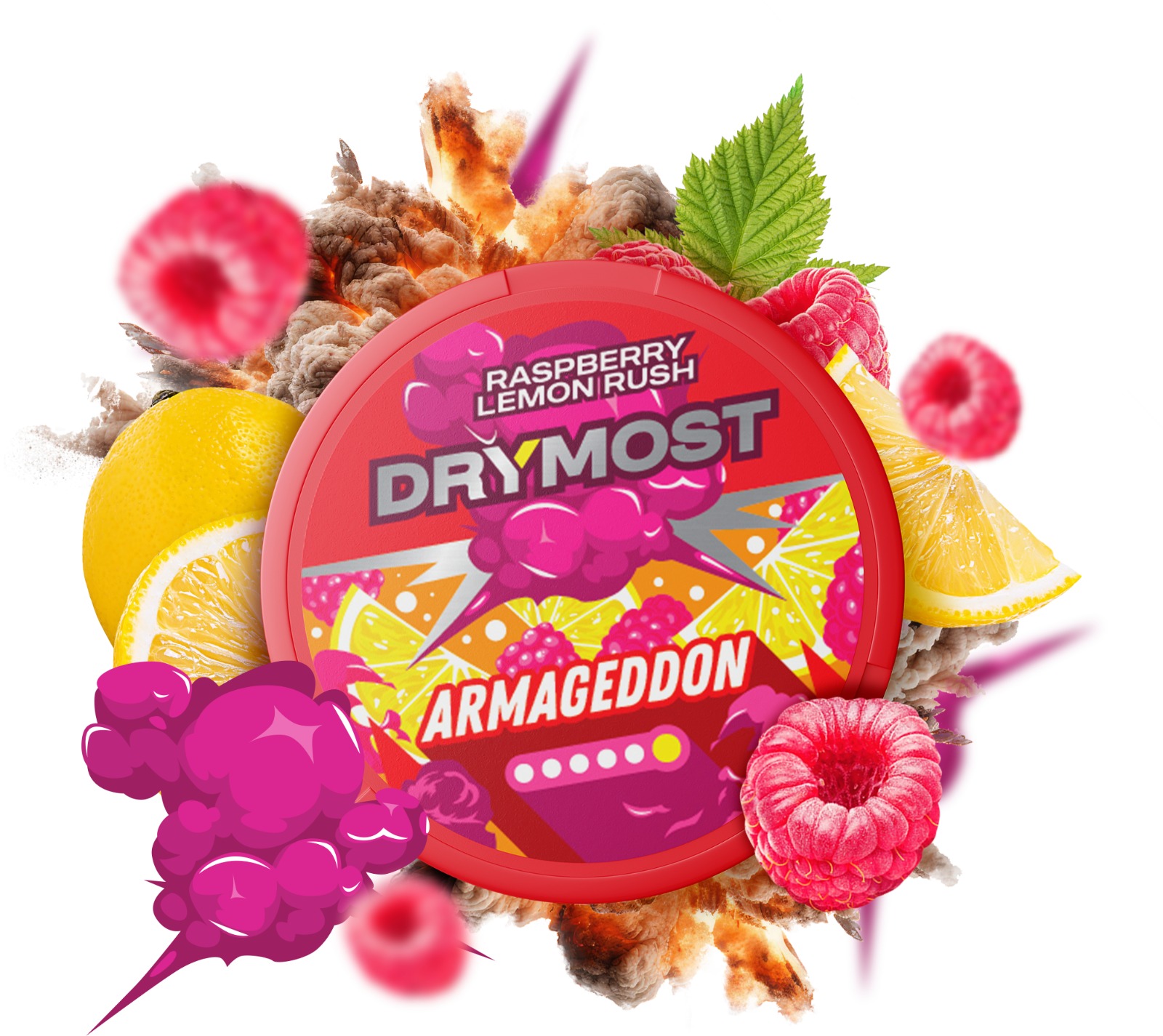 DRYMOST ARMAGEDON RASPBERRY LEMON RUSH – 50MG to elektryzujące woreczki nikotynowe o wybuchowym połączeniu soczystej maliny i orzeźwiającej cytryny. Ta nuklearna kompozycja łączy słodycz dojrzałych jagód z intensywną kwaskowością cytrusów, tworząc prawdziwie apokaliptyczne doznania smakowe.