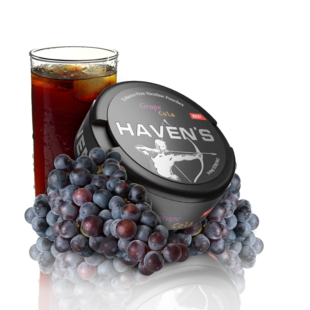 Haven’s – Grape Cola (50mg) to wybuchowa kombinacja soczystego winogrona i klasycznej coli, wzbogacona o intensywną dawkę nikotyny. Te woreczki nikotynowe zapewniają głęboki, owocowy smak z nutą karmelowej słodyczy, idealne dla tych, którzy szukają mocnego kopnięcia połączonego z przyjemnym doznaniem smakowym.