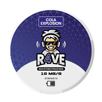 RAVE Cola Explosion – 10MG to woreczki nikotynowe o intensywnym, orzeźwiającym profilu smakowym. Klasyczna cola łączy w sobie słodkie i lekko kwaskowe nuty, tworząc wyrazistą, gazowaną kompozycję o energetyzującym aromacie.