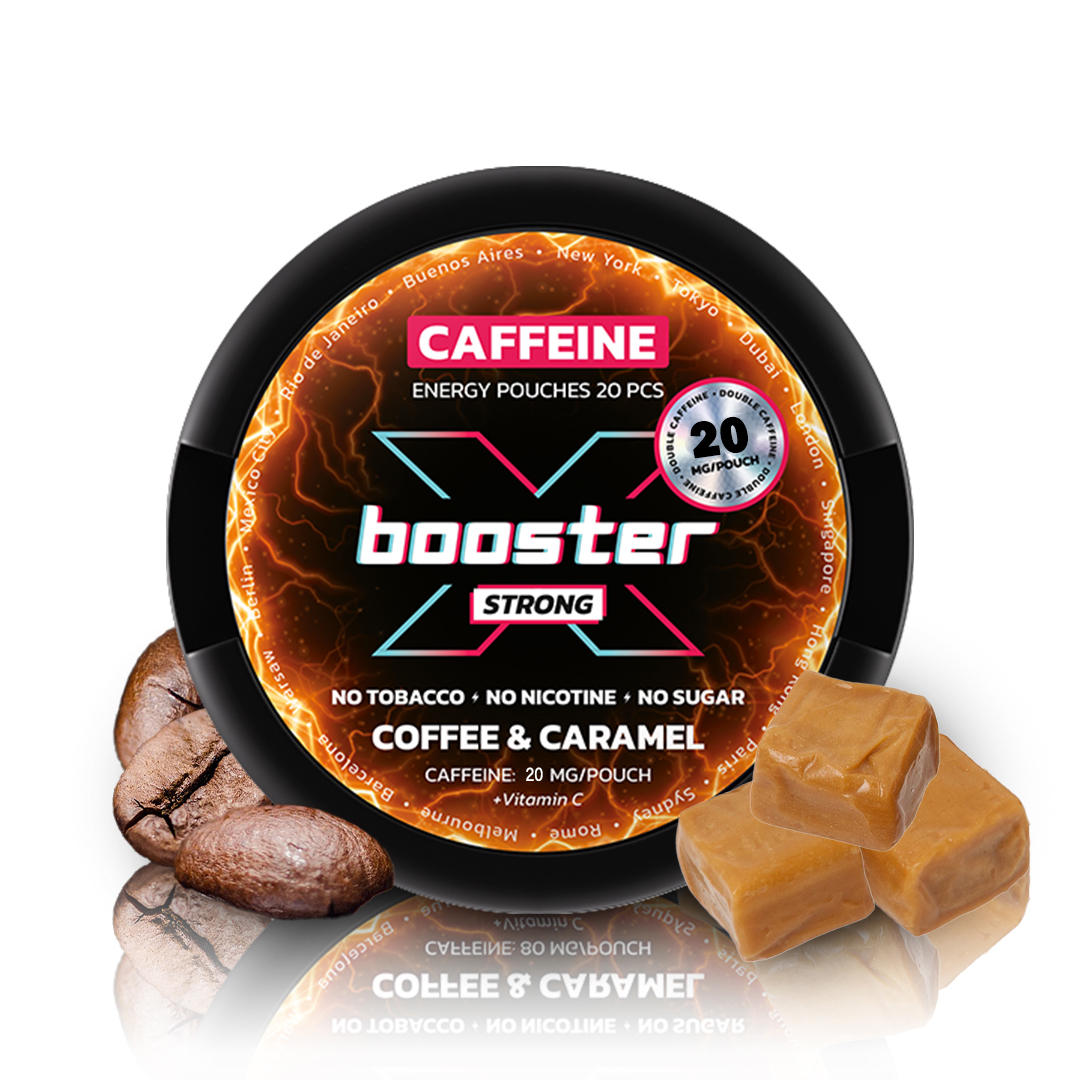 X-BOOSTER Coffee & Caramel – 20MG to woreczki kofeinowe o wyjątkowym smaku, który łączy intensywną kawową nutę z delikatną słodyczą karmelu. Doskonały wybór dla osób, które pragną połączenia pobudzającej mocy kofeiny z przyjemnym, deserowym smakiem. Idealne na szybkie pobudzenie w połączeniu z wyjątkowym aromatem.